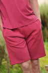 This pull on, super comfortable jersey loop back short with elasticated waist and drawcord has been garment dyed to give that relaxed and soft finish which is perfect for pool, beach, and lounge attire. This Crimson Red colour is stylish worn as a coordinated set with either our Tangier vest or tee or mixed with one of the other colours, Grey or Blue for complete versatility.